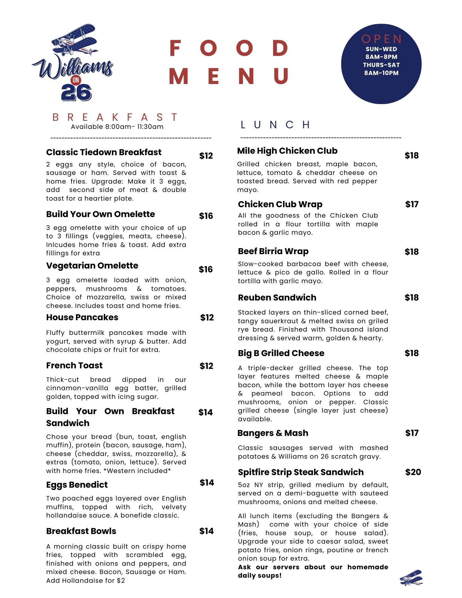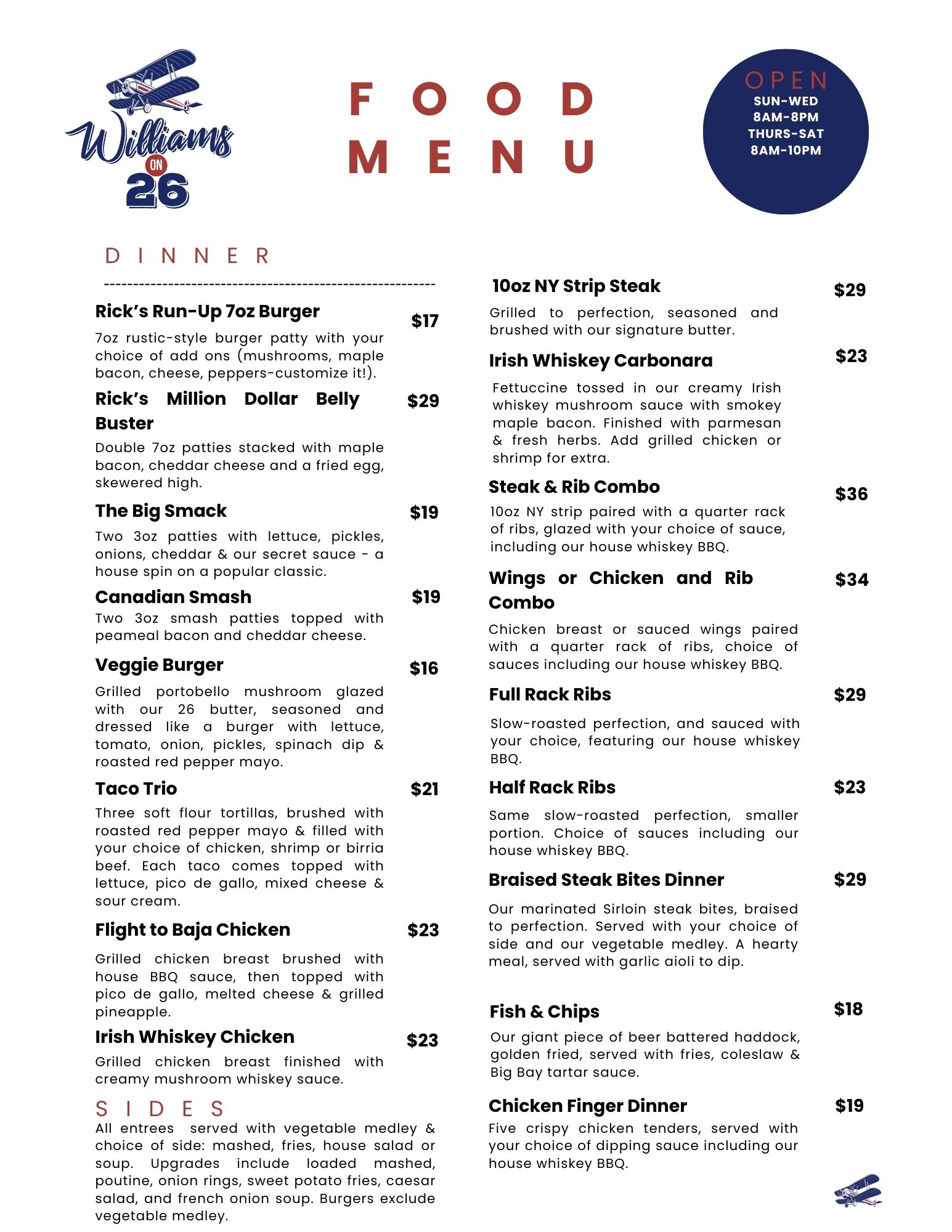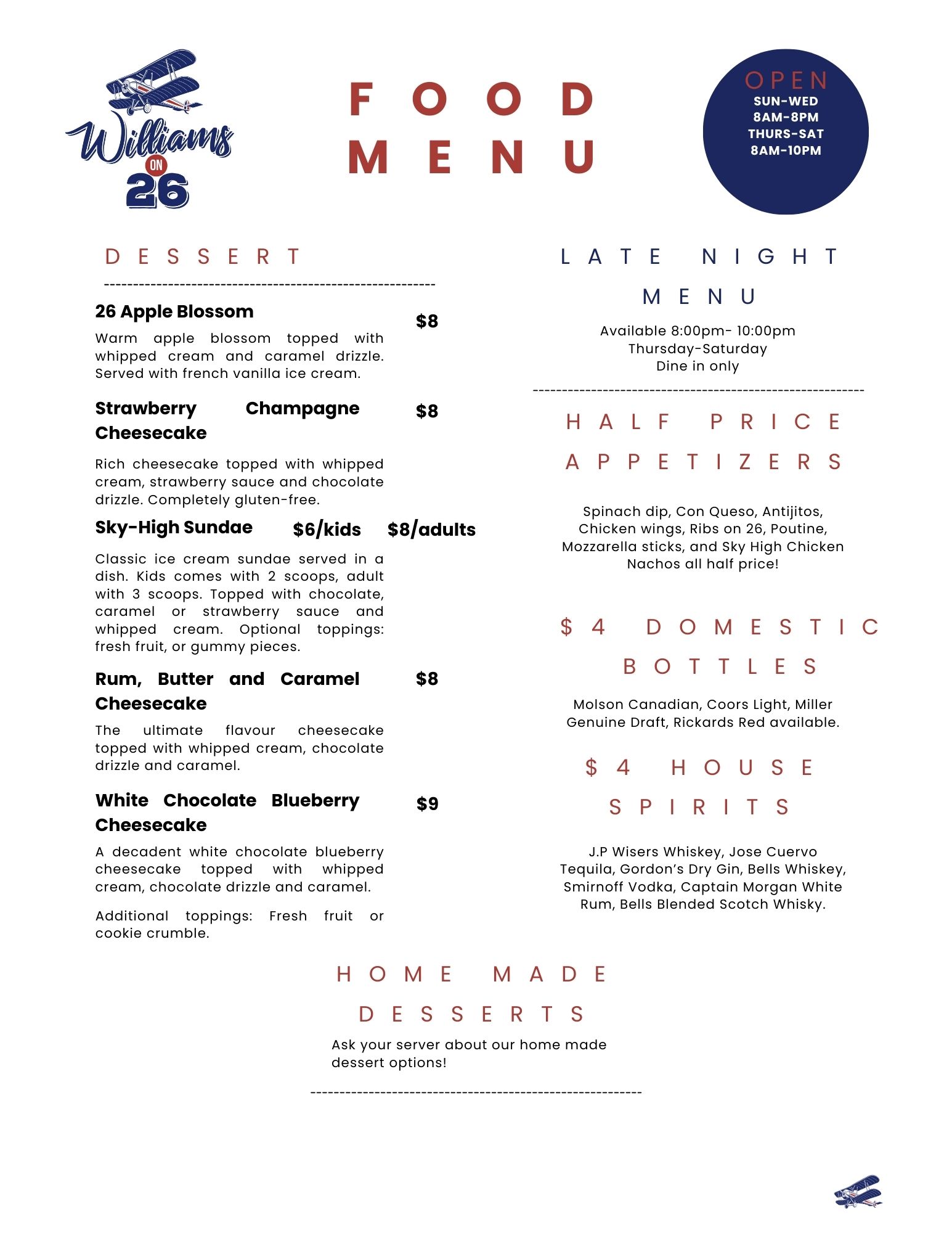 Williams on 26 Menus